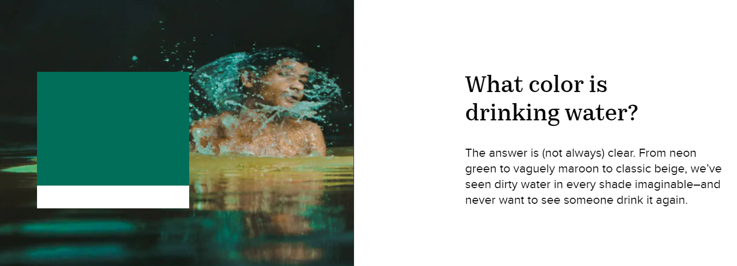From neon green to vaguely maroon to classic beige, Pantone claim that they’ve seen dirty water in every shade imaginable–and never want to see someone drink it again. The end of the piece therefore takes you to a page full of information telling you where you can donate and how. As pioneers of colour and all its beauty and variation, its not surprising that Pantone are keen to exhibit the emotional connotations of colour and how we can use it as a conduit for spreading crucial messages.