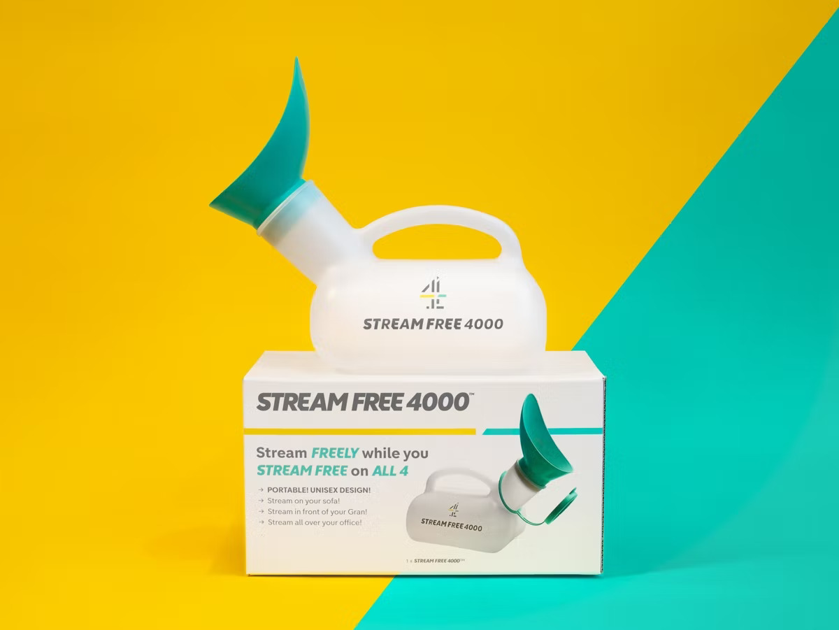 Channel 4 are promoting their comedy content with a QVC style ad for a portable unisex urinal which allows viewers to to ‘stream freely’ so that they don’t need to leave the sofa, even when nature calls.