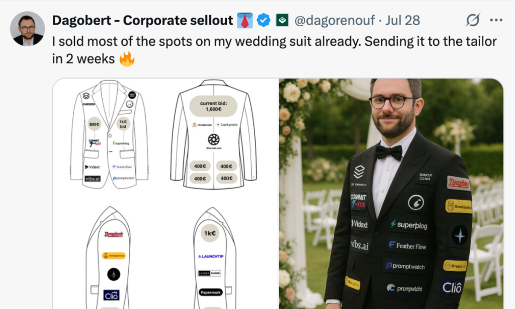 This guy turned his wedding suit into a sponsored billboard