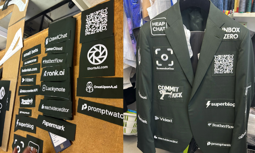 The Frenchman, from Lille, sold ad space on his suit, working with a tailor to transform his jacket into a patchwork of startup logos.