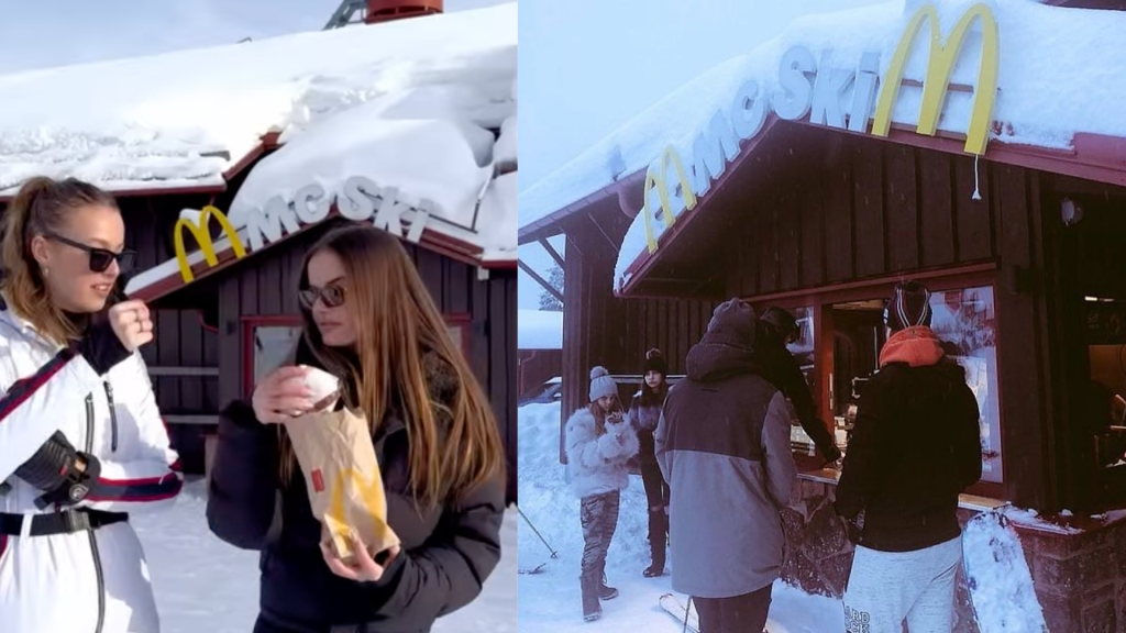 No cars. No drive-thru lanes. Just skiers gliding up to a hatch, ordering a Big Mac, and skiing straight back onto the slopes.