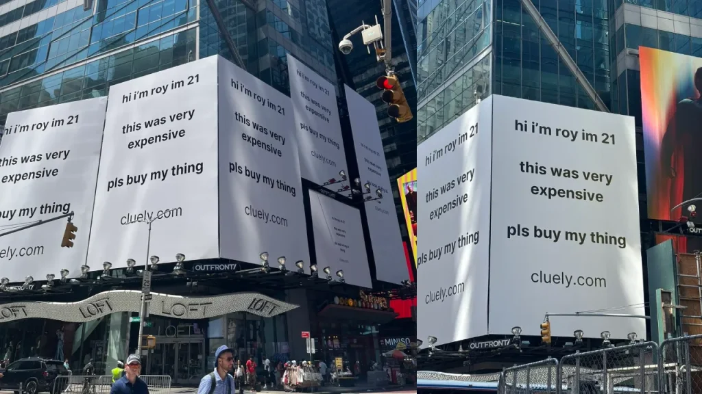 New York’s Times Square is where brands go to flex. Flashing lights, mega-budgets, CGI spectacles — but AI assistant startup Cluely just went the other way.