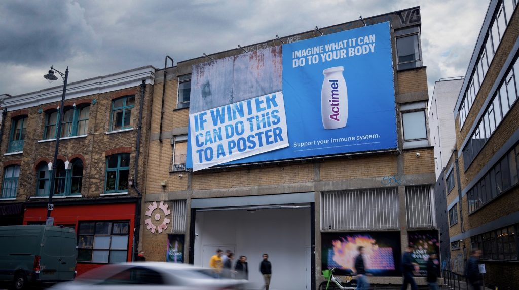 Actimel showcases the impact of winter on the body with striking outdoor displays in London and Liverpool, featuring battered and weathered posters.