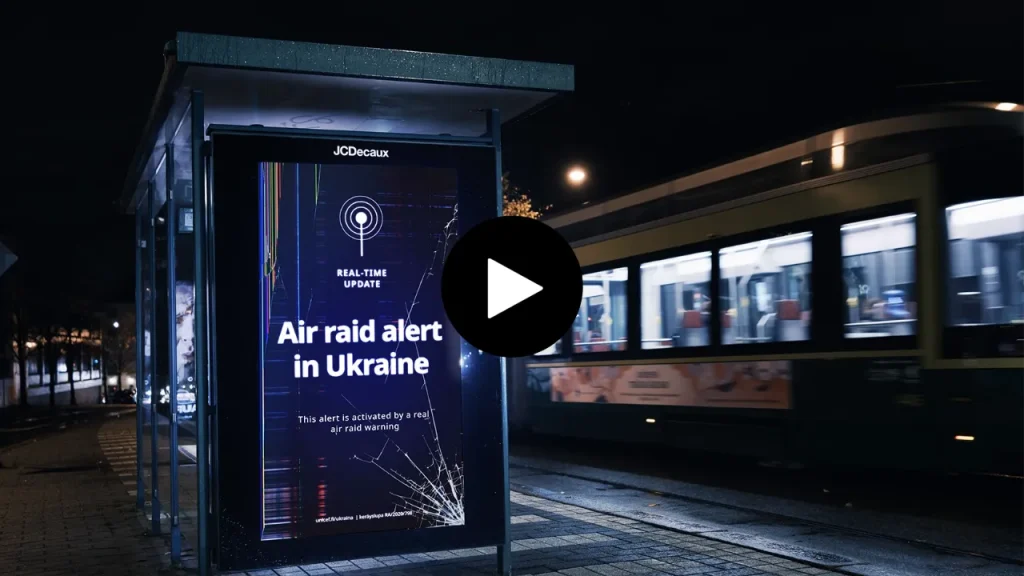In a stark reminder that Ukraine’s war is far from over, UNICEF Finland launched a campaign that streams real-time air raid alerts from Ukraine to OOH screens across Helsinki. The campaign, which taps into data from Ukraine’s official Air Alarm app, covers alerts from six major Ukrainian cities and instantly triggers messages across digital billboards whenever a siren sounds.
