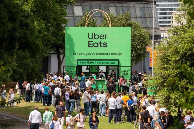 Uber Eats has given Britain’s lunch hour staple a luxury upgrade, serving gourmet meal deals from a 10-foot-tall delivery bag in central London.