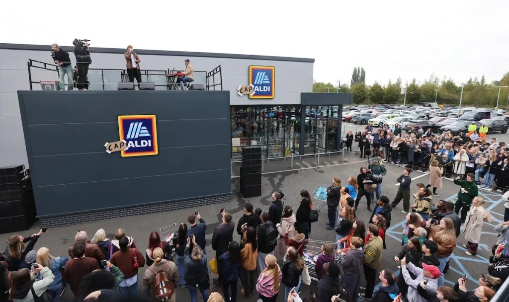 Lewis Capaldi and Aldi turned a regular grocery run into a supermarket fever dream with a surprise live set from a rooftop.