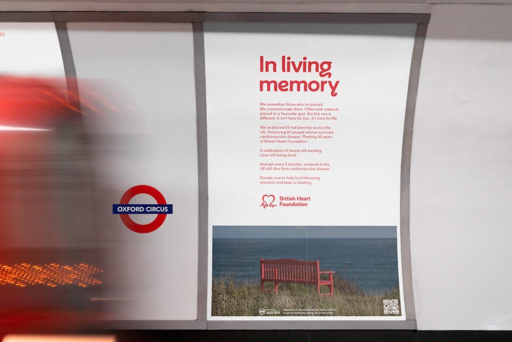 In a powerful twist on the traditional memorial, Saatchi & Saatchi has partnered with the charity to launch “In Living Memory” – a nationwide campaign honouring 65 survivors of cardiovascular disease with red benches installed across the UK.