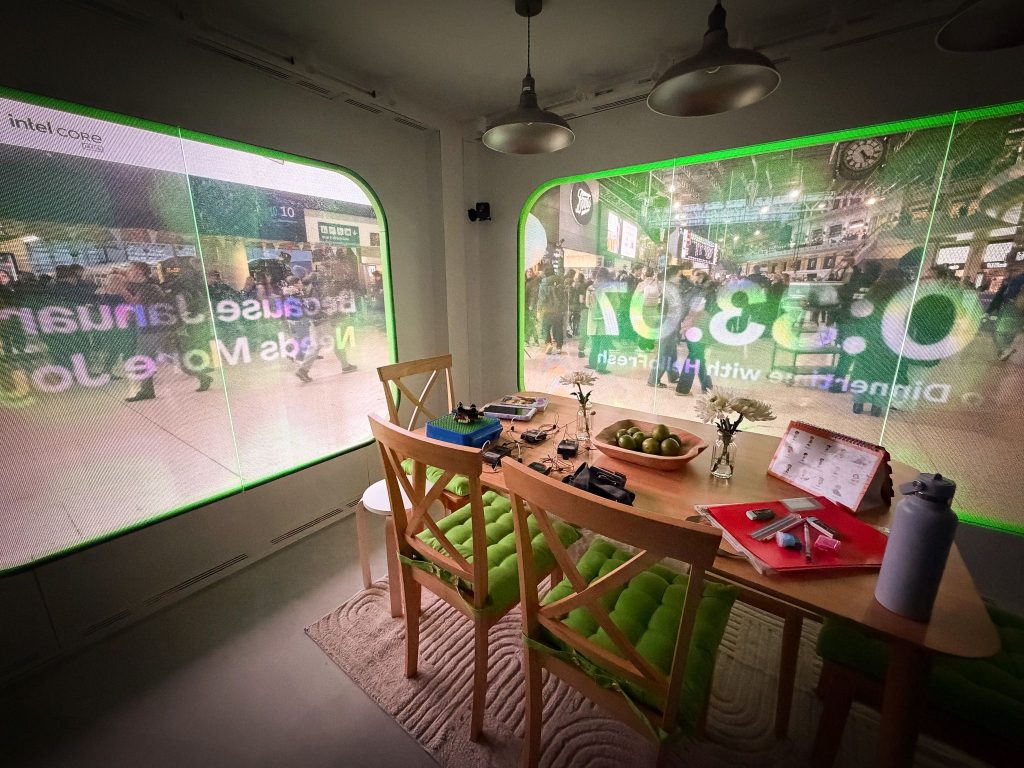 By day, a transparent PixelGlass screen builds anticipation with a countdown – by night, it reveals a slice of domestic life to stop passers-by in their tracks.