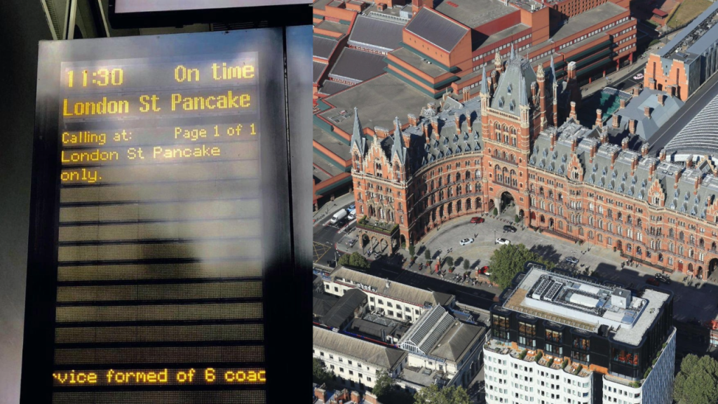 St Pancras station has been temporarily rebranded “London St Pancake” for Pancake Day, thanks to a playful activation by operator Southeastern Railway.