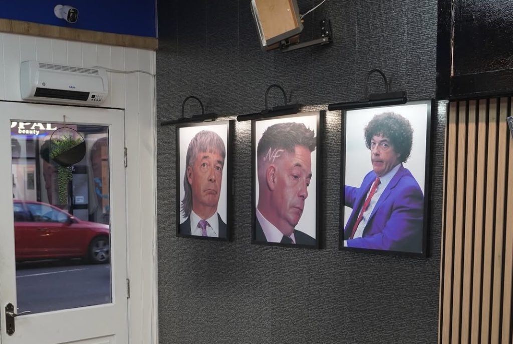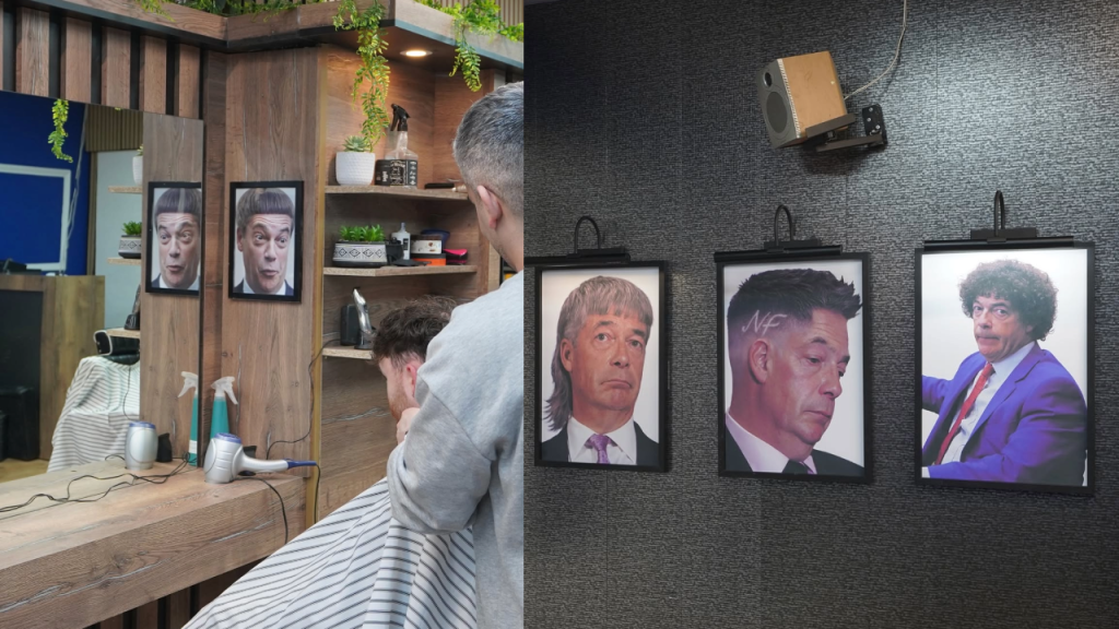 Turkish barbers responds to Farage with shopfront satire