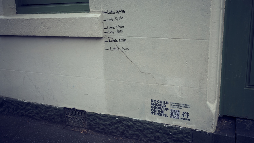 Children’s charity We Are Mobilise have turned children’s height marks into street art across Sydney and Melbourne to highlight youth homelessness in Australia.