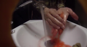Soap makes customers’ hands run with blood in prank to promote horror film