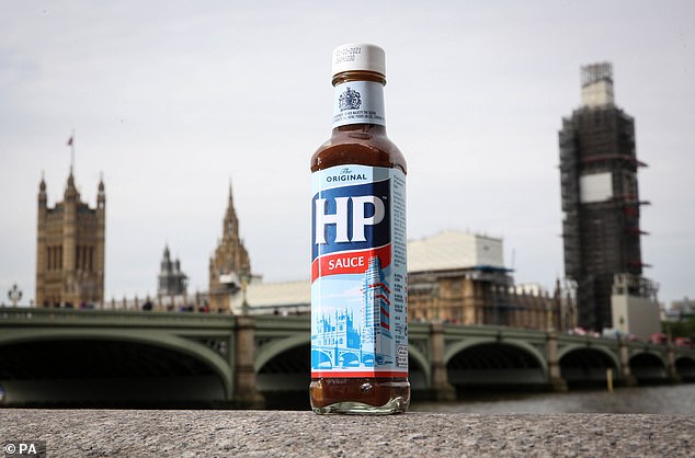 HP Sauce update label to show scaffolding on Big Ben