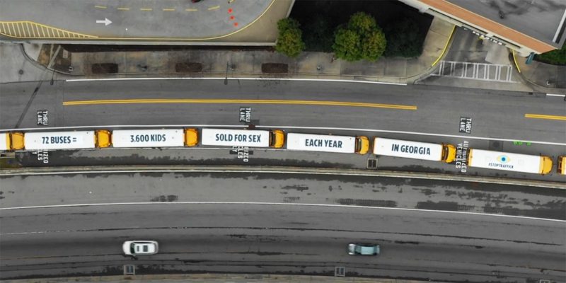 72 School Buses Form a Mile-Long Anti Sex Trafficking Billboard